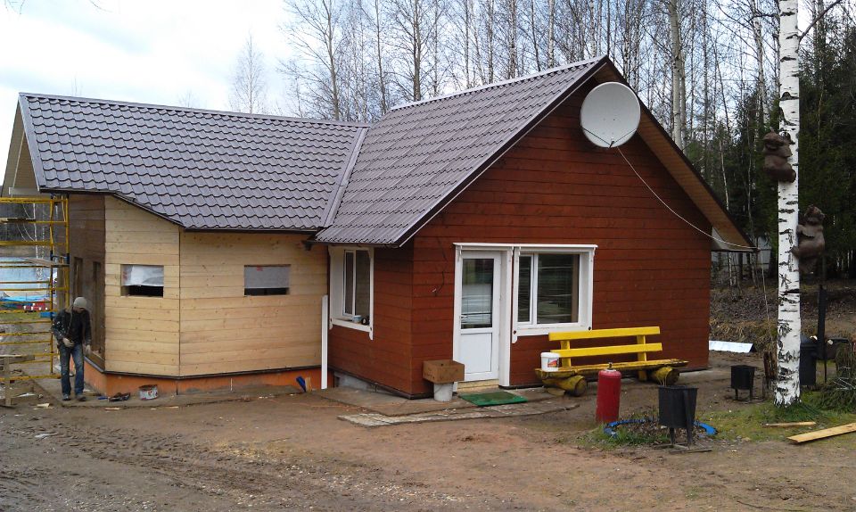 2015г. Талдом, Большое Страшево, пристройка, сайдинг, кровля, отделка.